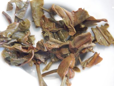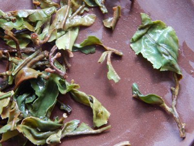 Pu Errh Yi Wu Bing Cha, Grün 2006 Ein tolles Blatt - einige ungöffnete Knospen dabei. Wildwachsend - eine herrliche Stall-Frucht-Note. Ganz lecker! Weich und füllig. Duftig und erdig. Ich empfinde ihn als sehr breit gefächert. Dabei aber duftiger als der Tuo Cha. 100g / 16,00 €