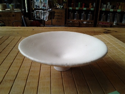Hier zu sehen mit einer handgedrehten Porzellan-Schale - Oben und Innen glasiert, der Fuss roh - wunderschön anzufassen!