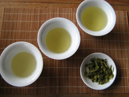 Pin Lin Shan, Pouchong (Bao Zhong), Nordtaiwan, Frühling 2011 Ein heiterer, leichter Gebrauchsoolong, der sich auch gut kalt trinken lässt. Fein blumig, mit schönen Orchideen-Noten. 5-6 Aufgüsse bei 75°-80° 100g / 15,00 €