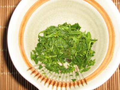 Sencha Mizudashi, Mie 2009, Japan Sencha-Konacha, das heißt, es handelt sich hier um einen feineren Blattgrad. Ein toller Sommertee, der sich kalt gießen lässt. Herrlich spritzig und leicht zitronig - ganz lecker an warmen Tagen. Dieser Tee ist zu je 10g in Pyramiden-Beutel verpackt. Ein Beutel auf 1 Liter kaltes Wasser geben und ca. 3 min ziehen lassen. Den zweiten Aufguss ebenfalls drei Minuten ziehen lassen. Als Versuch habe ich dann zum Abschluß den Tee ein letztes Mal heiß (75°) gegossen. War lecker - wie ein schöner Sencha. 100g (10x10g) / 15,00 Euro