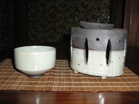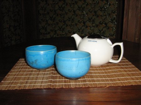Hier in Kombination mit einer 0,45l Porzellankanne aus Japan - sehr dünnwandige Teeschalen, Raku Brand, herrliche Glasuren und ein wunderschönes Craquele. Als ich die erste Cellandon-Schale in den Händen hielt, verliebte ich mich sofort!