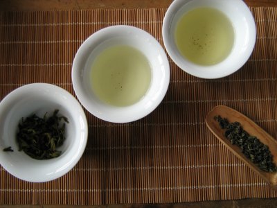 Neuheiten im November China - Luan Gua Pen, Anhui 2009, kbA Öko Kontrollnummer: DE 026 Das Jahr 2009 scheint sehr gut für die Provinz Anhui gewesen zu sein - nicht nur der Huang Shan ist hervorragend gelungen, auch der Luan Gua Pen ist ausgesprochen zu empfehlen. Frisch duftig, herrlich smaragden in der Farbe, das Blatt klassisch groß und mit typischer Färbung. In der Tasse ist der Tee köstlich gemüsig, leicht, aromatisch - ein geschmacklicher Mix aus sehr frühem Lung Ching und hochwertigem Sencha. Ganz doll lecker. Auch der zweite Aufguss ist sehr gut, ab dem dritten jedoch wird der Tee dünner, so daß schon der dritte Aufguss Geschmackssache ist. Auch jetzt, einige Zeit nach dem Trinken, bleibt der Tee sehr präsent -mild, voll, weich - auf dem Gaumen stehen. Sehr schön. 100g / 9,50 €