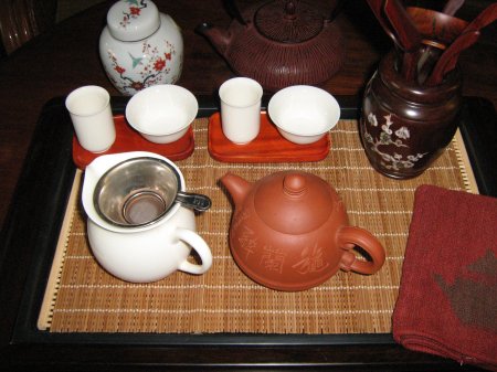 für eine komplette Gong Fu Cha empfiehlt sich ein größerer Tisch, da man dann